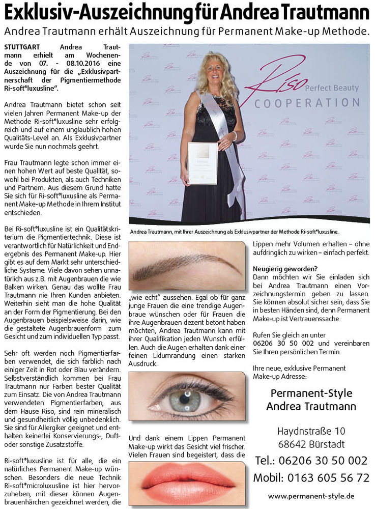Die Methode Ri-soft®luxusline ist eine weiterentwickelte Permanent Make-up Methode von Ri-soft®lining.